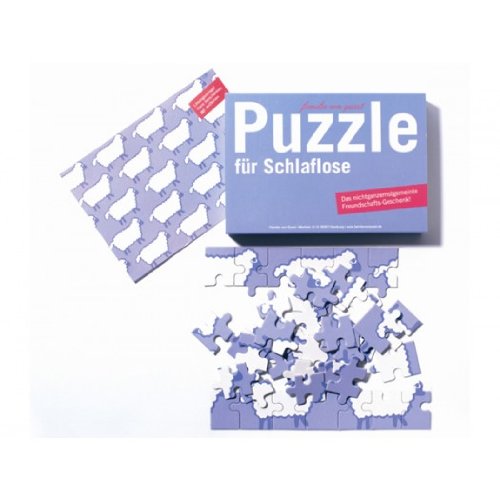 Als Mitbringsel für einen schlaflosen Freund ist dieses Puzzle hervorragend geeignet. Hat der Freund diese monotone Schafsherde endlich zusammengepuzzelt, ist er sicherlich auch müde. Auf jeden Fall mal etwas Anderes, als nur langweilige Schäfchen zählen.
