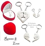 Ja, bekannt ist das inzwischen, aber trotzdem sind sie immer noch beliebte Geschenke für Pärchen: Schmuckstücke wie Kettenanhänger oder Schlüsselanhänger als gebrochene Herzen, in die man die Namen eingravieren lassen kann und dann aufteilt, sodass jeder Partner eine Hälfte bekommt. Der Gedanke dahinter, dass man das Herz nur zusammen komplett machen kann, ist natürlich schon sehr romantisch und die Schmuckstücke sind wunderschön.