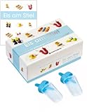 Für alternative Formen wie Joghurtbecher dürfen Sie auch nicht vergessen, dass Sie Stiele brauchen. Auch die gibt es sehr günstig zu kaufen. Die üblichen Eisstiele sind flach und breit, so wie bei gekauftem Eis am Stiel. Schaschlikspieße eignen sich nicht, denn Kinder können sich an der Spitze verletzen und außerdem sind sie so dünn, dass das Eis nach kurzer Zeit herunter rutscht.