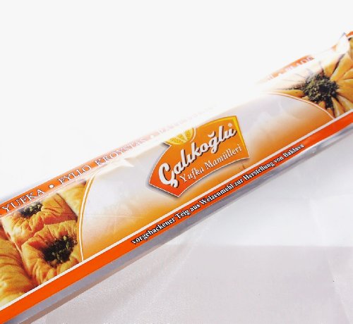 Baklava wird aus Filoteig bzw. sehr dünnem Yufka-Blätterteig gebacken. Diesen erhält man im Kühlregal des nächsten türkischen Geschäfts. Wichtig ist, dass er für Baklava vorgesehen und entsprechend dünn ist.