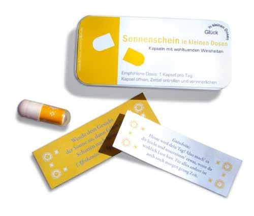 Lampenfieberpillen - mit Mutmacher | Sonnenschein in kleinen Dosen - Liebeskummerpil... |