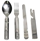 - Campinggeschirr – hier gibt es spezielles Aluminiumgeschirr, womit man gleichzeitig kochen und aus dem man anschließend auch essen kann. Als Besteck bietet sich Bundeswehrbesteck an, das neben dem üblichen Messer, Gabel und Löffel auch über Flaschen- und Dosenöffner verfügt, Edelstahltasse