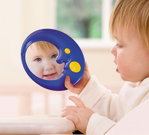 Eine tolles Spielzeug für das Kinderbett oder auch den Wickeltisch ist ein aufgehängter Spiegel, natürlich schön gesichert und bruchsicher. Auch, wenn die Allerkleinsten sich darin erst nicht selbst erkennen, können sie damit echt großen Spaß haben. Ab etwa 3 Monaten werden sie dann sogar anfangen ihr eigenes Spiegelbild anzulächeln und erste kleine, noch unbeabsichtigte Grimassen zu schneiden, um mit dem Spiegelbild zu kommunzieren.