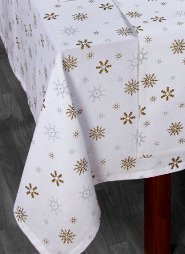 Klar ist es schön, wenn die Tischdecke bereits ein weihnachtliches Dekor hat. Je dezenter es ist, um so leichter fällt es, die übrige Dekoration für den festlich gedeckten Tisch an Weihnachten zusammenzustellen. Farbe und Dekor des Weihnachtsschmucks muss auf jeden Fall zur Tischdecke passen. Das Geschirr sollte möglichst unifarben sein und kein Muster haben, um sich nicht mit den Ornamenten der Tischdecke zu beißen. Insofern sind weiße Tafeltischdecken aus Damast die neutrale Lösung, die mit goldenen oder silbernen Streu- und Dekosternen weihnachtlich aufgepeppt werden kann. Wenn Sie keine Damast-Tischdecke haben oder sie für die Tafel zu kurz ist, können Sie auch einfache, weiße Bettlaken verwenden. Wenn Geschirr und Weihnachtsdeko darauf platziert sind, ist überhaupt nicht mehr erkennbar, dass es sich um ein Bettlaken handelt.