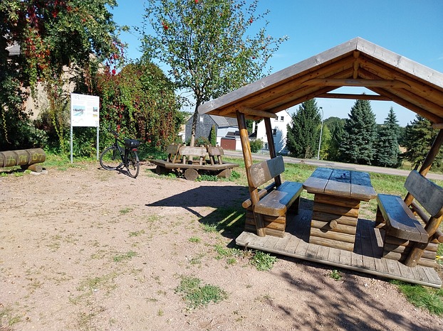 Beginnen wir also ungefähr in der Mitte des Radwegs, am ehemaligen Bahnhof Geringswalde und starten eine knapp zehn Kilometer lange Tour in Richtung Waldheim. Der Anfang ist verheißungsvoll, denn die Strecke ist gut ausgebaut, von Natur oder idyllischer Wohnbebauung geprägt und trifft nur einmal direkt auf eine sehr ruhige Straße. Bereits hier zeigt sich, was den Charme dieses Radwegs fast überall ausmacht: Asphaltierte Strecke, liebevoll angelegte Rastplätze und sicherheitstechnisch gut realisierte Straßenquerungen.