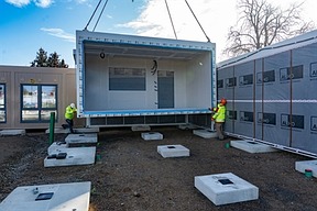 Die Gebäudemodule für den Interimsbau werden aufgestellt