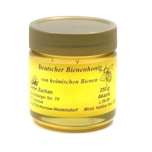 - Akazienhonig hat einen milden süßen Geschmack, eine sehr helle bis hellgelbe Farbe, ist geruchsarm, dünnflüssig und hat den höchsten Fruchtzuckergehalt, wodurch er oft sogar jahrelang flüssig bleibt.