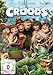 Irgendwann in der Steinzeit, gleich hinter der dritten Höhle von links: Die Croods leben ein urzeitliches Leben voller Angst. Kein Wunder, wurden ihre Nachbarn doch entweder von Mammuts zertrampelt, von Ungeheuern gefressen oder von Krankheiten niedergestreckt. Familienoberhaupt Grug besteht deshalb auf der eisernen Regel, dass sich kein Familienmitglied bei Anbrechen der Abenddämmerung mehr draußen befinden darf. Ebenso wenig sind Innovationsgeist oder Neugierde erlaubt. Stumpfsinnig verbringen Vater, Mutter, deren drei Kinder sowie die halb debile Großmutter die Tage mit den ewig gleichen Spielchen und die Nächte in der viel zu engen Einfamilienhöhle ohne WLAN.