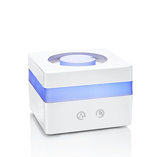 Und falls jemand derartiges vermuten möchte: Das Gerät besitzt keinen Akku, den man für die kabellose Benutzung aufladen könnte. Vielleicht möchte Bestek damit einfach nur zeigen, wie hip das Unternehmen ist. Nicht ganz zu Unrecht: Der Aroma-Diffuser erinnert im Design ein bisschen an Apple-Produkte: Abgerundete Ecken, in Weiß gehalten, Touch-Display. Für den bei elektronischen Aroma-Diffuseren gängigen LED-Lichtwechsel sorgt eine Leiste, deren Farbe man mittels einer der beiden Tasten wechseln kann. Mit der anderen Taste lässt sich die Stärke des "Nebels" einstellen. Zu beachten ist hierbei, dass das Wasser bei der stärkeren Einstellung schneller verdunstet.