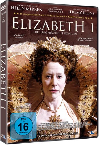 Das lässt sich von Helen Mirren als Elizabeth I. – Die jungfräuliche Königin nicht behaupten. Diese fast zeitgleich entstandene zweiteilige Produktion spart Elisabeths Jugendzeit aus und setzt zu einem Zeitpunkt ein, als deren Chancen, doch noch zu heiraten und einen Thronfolger zu gebären, mit Ende vierzig immer geringer wurden. Gleichwertig neben der Politik stehen Elisabeths Persönlichkeit und ihre Liebesbeziehungen, im ersten Teil zum langjährigen Freund Robert Dudley, dessen Loyalität durch ihre Heiratsverhandlungen mit dem Herzog von Anjou auf eine harte Probe gestellt wird, und im zweiten Teil zu dessen Stiefsohn, dem etwa dreißig Jahre jüngeren Earl of Essex.