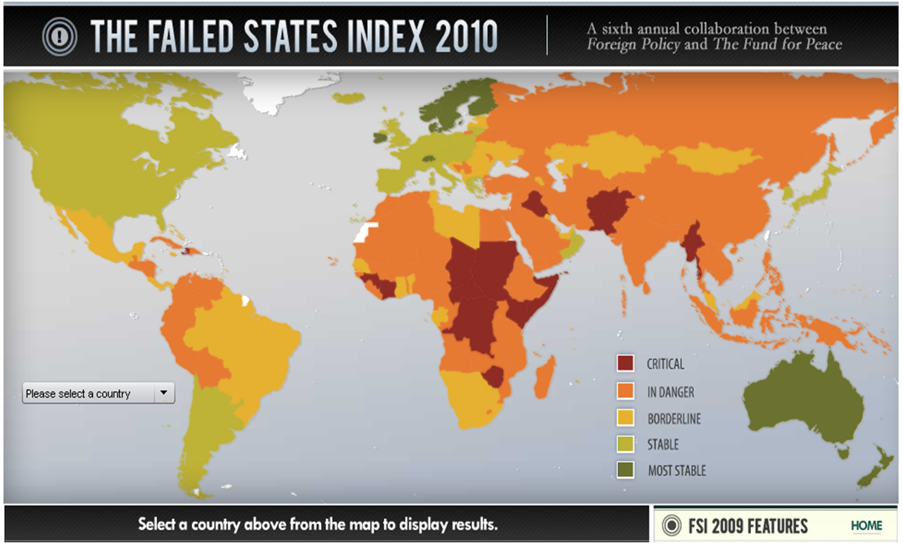 Ist das Konzept der fragilen Staaten ("Failed States") zu sehr von den westlichen Vorstellungen von moderner Staatlichkeit geprägt?Failed States Index 2010 (Bild: http://2.bp.blogspot.com/_7...)