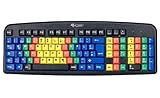 Zur Unterstützung empfehle ich Ihnen die Übungstastatur von GeneralKeys. Die Tastatur ist farblich unterteilt, wobei jede Farbe für einen Finger steht. So kann man die Bereiche, die von den bestimmten Fingern genutzt werden sollen, schnell erlernen.