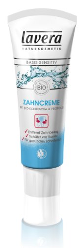 Mein Favorit unter den drei von mir bis jetzt getesteten fluoridfreien Zahncremes ist diese von Lavera. Die Kombination aus Xylitol, Calciumcarbonat und den Zahnfleisch und Mundraum schützenden Wirkstoffen Bio-Echinacea und Propolis bildet ein starkes "Team" für die Zahnpflege sowie Mundhygiene. Die weiße Zahnpasta mit hinreichend fester Konsistenz lässt sich normal sparsam dosieren, hat einen angenehm milden, frischen Geschmack und reinigt die Zähne sehr gut. Beim Putzen entsteht ein zarter Reinigungsschaum, jedoch keineswegs in übertriebener Menge.