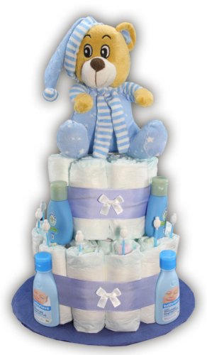 Große Windeltorte "blauer Bär" mit Teddybär - d... |