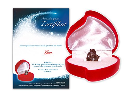 Eine besondere Gabe ließ sich der Lebensgefährte einer Freundin einfallen. Er schenkte ihr eine echte Sternschnuppe in Form eines echten Meteoritensplitters. Ich habe so etwas zuvor noch nie gesehen. Aber es sieht wirklich originell aus. Das Ding war in einer hübschen, herzförmigen Schachtel verpackt und enthielt auch ein Zertifikat über den Fundort. Beim Recherchieren habe ich die Box in einem bekannten Online-Shop gefunden. Die Sternschnuppe kostet nicht die Welt: Gesehen um knapp vierzig Euro.