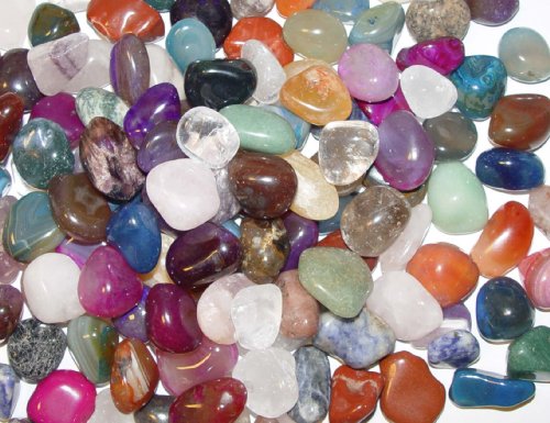 In dieser Mischung sind zum Beispiel enthalten:"Bergkristall, Rosenquarz, Amethyst, Moosachat, bunte Achate, Jaspis ". Und viele Andere mehr!