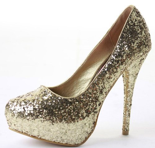 Goldene Pumps sind die offensichtlichen Stars der Schuhtrends 2013. Sie passen nicht nur zum Abendkleid, sondern lassen sich auch tagsüber zu vielen Outfits tragen. shoeFashionista - Damen Plateau High Heels Pump...![]() | Damen Schuhe, PUMPS, ELEGANTE HIGH HEELS, 19619...![]() | Damen Glitzer Party Pumps High Heels Gold 38![]() |