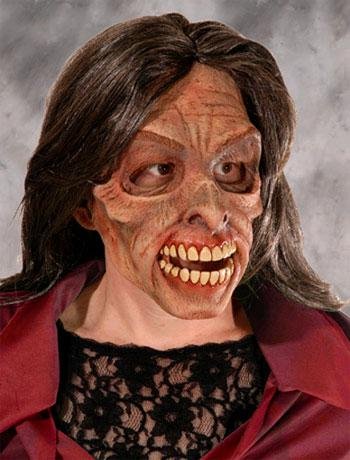 Zombie-Masken für Halloween gibt es wirklich in allen Farben, Formen und Verwesungszuständen. Doch Halloween-Masken für weibliche Zombies sind sehr selten. Eine der seltenen weiblichen Zombies ist "Mrs. Fresh". Gepflegt, wie sie als Dame eben auftritt, weist sie keine sichtbaren Blutspuren auf wie viele ihrer männlichen Kollegen. Von der Ferne könnte man sie fast für eine nette, alte Dame halten. Doch wer ihr zu nahe kommt, merkt schnell, dass er an eine jenseitige Gesprächspartnerin gelangt ist.