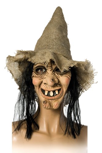 Unsere Hexe hier kommt mit Hut und Haar für ein paar Euro direkt von Amazon. Fettige, schwarze Haare, die klassische Warze auf der Nase und ausladende Zähne verraten sofort, wes Geistes Kind die Dame ist, da hilft auch das freundliche Lächeln nichts. Der Seppelhut lässt vermuten, dass die Dame eher aus einem ländlichen Gebiet stammt, vielleicht trägt sie auch ein Dirndl, denn die Hexe von Welt folgt modischen Trends, auch wenn sie vielleicht schon ein paar hundert Jahre alt ist. Aus dem Bann dieser Hexe kann sich niemand entziehen, es sei denn, er hat selbst Zauberkräfte.