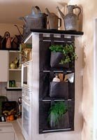 Ein noch einfacheres Bewässerungssystem können Sie auch aus PET-Flaschen basteln. Die Flaschen werden dann einfach an der Wand befestigt. Ganz einfach geht das mit fertigen Wandtaschen, die man zu Dekozwecken kaufen kann.