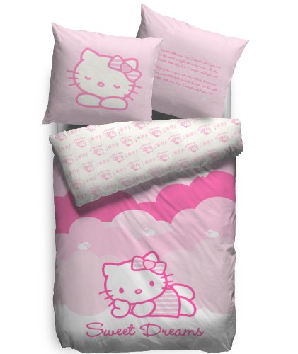 Das Mutterunternehmen Sanrio erklärte neulich, dass Hello Kitty ein Mädchen ist, in England lebt, eine Zwillingsschwester und eine eigene Katze hat. Sie esse gerne Apfelkuchen, spiele Klavier und sei begabt in Englisch und Musik. Auf viele Nachfragen hin erklärte das Unternehmen mittlerweile, dass es sich bei Hello Kitty um eine vermenschlichte Katze handele. Also eine besondere Katze, die Klavier spielt dann wohl. Jetzt sind alle Klarheiten beseitigt – für die Bettwäsche kommt es jedoch vor allem auf den Niedlichkeitsfaktor an, und der ist unbestritten.