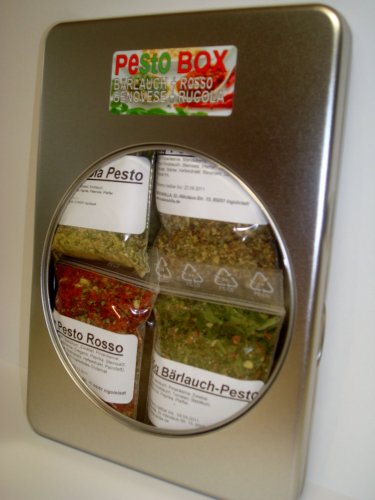 Pestos sind toll, vor allem für Pasta-Fans, denn zu Pasta passen sie besonders gut. In verschiedenen Feinkostläden bekommen Sie tolle und ausgefallene Pestogeschenksets, so wie dieses hier: die PESTO-Box.