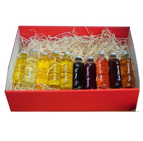 Kräuteröle und Essige sind tolle Geschenke für Köche und Genießer. Interessant finde ich dieses tolle Geschenkset, bestehend aus 10 kleinen Probierflaschen, auch, wenn nicht alle direkt mit Kräutern sind.
