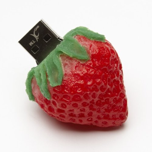 Zum Anbeißen süß ist auch dieser USB-Stick in Form einer Erdbeere. Probieren sollte man es dennoch nicht: Die Erdbeere würde ja doch Sieger bleiben! Dieser lustige und originelle USB-Stick wird in einer Geschenkbox verpackt geliefert und fasst immerhin 8 GB an Daten. Mit einem Gewicht von knapp 20 Gramm passt dieser USB-Stick in Erdbeerenform - oder ist es doch eine Erdbeere in USB-Stick-Form? - bequem in jede Jackentasche.
