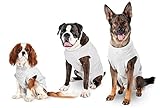- Sind die Allergie und der Juckreiz allerdings stark ausgesprägt und möchte man sich und dem Hund eine Ruhepause gönnen, sollte man an einen Hundebody aus Baumwolle denken, der den Körper vor Wunden schützen oder eine Halskrause, die es auch schon aus aufblasbaren, weichen Material gibt, beim Schlafen als Kopfkissen dienen kann und es dem Hund erschwert an sich herum zu knabbern.