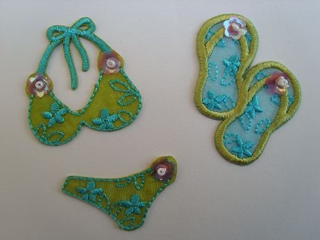 Sommerzeit, Badezeit. Wir wollen ans Meer. Wie wäre es mit fröhlichen, sommerlichen Motiven wie der Bikini mit Badehose und Flip-Flops oder Blumenranken auf Ihrer Kleidung? An Motiven gibt es kaum Grenzen.