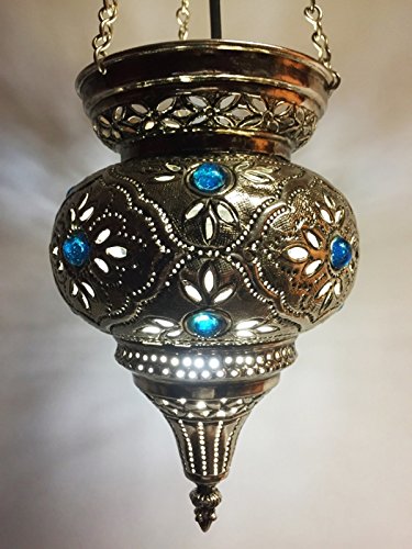 Traditionelle orientalische Lampen werden oft aus Kupfer oder Messing gefertigt. In Handarbeit werden Muster in das Metall geschlagen. Diese Muster sorgen später für das faszinierende Schattenspiel an der Wand. Sehr beliebt sind die traditionellen Moscheelampen, die ursprünglich Laternen waren. Das filigran verarbeitete Messing bietet farbigen Glassteinen Halt, die den Zauber dieser orientalischen Lampen ausmachen. Ursprünglich wurde in eine solche Moscheelampe eine Kerze oder ein Teelicht hineingestellt, heutzutage gibt es sie jedoch auch in moderner Form mit einer Fassung für elektrische Glühbirnen und Energiesparlampen. Sogar LED Leuchtmittel lassen sich für die orientalischen Lampen verwenden. Eine traditionelle Moscheelampe wird in einem geschmiedeten Halter aufgehängt. Eine Abwandlung der Moscheelampe sind modernere Decken- und Wandlampen, die ebenfalls aus bunten Glassteinen und Messing gearbeitet werden. Neben der typischen Laternenform sind orientalische Lampen auch in runder und rechteckiger Form erhältlich. Sehr beliebt sind auch Modelle, deren Form an Sonne oder Sterne erinnert.