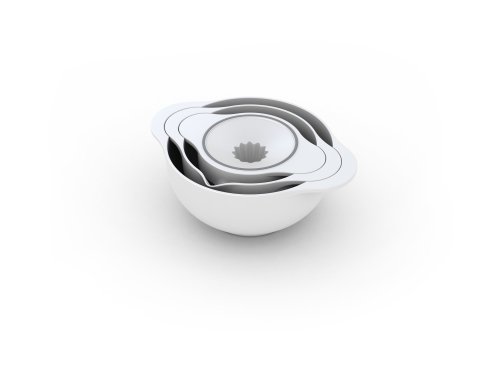 Wer eine kleine Küche hat, findet mit der Zeit sein System, nach dem er seine Töpfe, Auflaufformen, Salatschüsseln und anderes Geschirr ineinander "schlichtet" (österr. für "geordnetes Stapeln"). Das passt einmal mehr und einmal weniger gut und bisweilen entsteht ein etwas wackliger Turm. Perfekt ineinander passend präsentieren sich dagegen die Schüsseln des Labels Joseph Joseph: Schüsseln der Serie "Nest" passen ineinander wie ein Puzzle, andere werden in Art einer Matrjoschka ineinander aufbewahrt ("Joseph Joseph Schüsselset 4er Prep&Store Weiß-Grau").