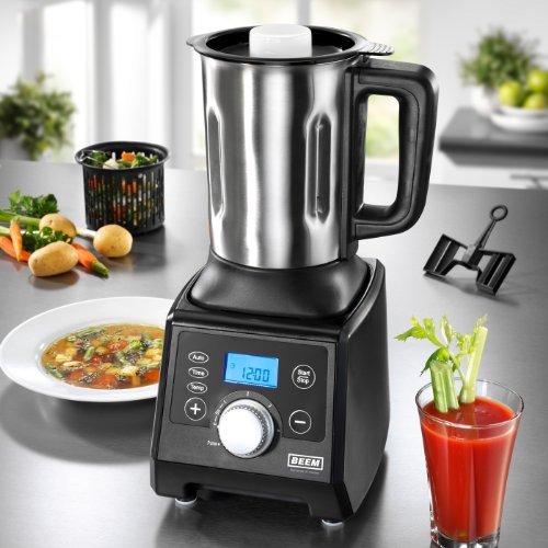 Beem D2000.765 Küchenmaschine Gigatherm Mix und Cook 12 in 1 ist ein wahrer Tausendsassa: Mit ihren 19,5 x 25 x 43 cm kann sie Pürieren, Mixen, Rühren, Crushen, Hacken, Zerkleinern, Dämpfen, Dünsten, Kochen, Einkochen, Emulgieren und Warm halten.