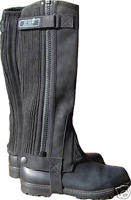 Vor allem bei Freizeit- und Wanderreitern sind Minichaps sehr beliebt. Chaps kommen eigentlich aus der Arbeitsreiterei, es handelt sich dabei um "unvollständige Lederhosen", die nur aus Beinteilen bestehen, die von einem Gürtel zusammen gehalten werden. Natürlich werden sie über einer normalen Hose getragen. Minichaps reichen dagegen nur bis zum Knie. Beliebt sind sie vor allem wegen ihrer Flexibilität. Mit Chaps wird fast jeder Schuh zum Reitschuh. Im Sommer sind sie überdies luftiger als Stiefel.