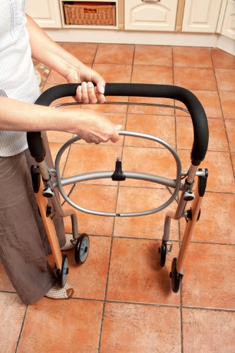 Dieser Indoor-Rollator besticht durch seine feine Verarbeitung von Holz. Auch hiermit ist der Transport von kleineren Dingen möglich. Bei diesem Modell kann das Tablett durch einen Korb ausgetauscht werden. Sicherheitstechnisch steht dieser dem vorherigen Modell in nichts nach. Auch dieser ist mit einem durchgehendem Bremsbügel ausgestattet, der bei einen sofortigen Stopp Halt sichert. Die Bedienung der Bremse kann auch mit einer Hand erfolgen. Eine wichtige Funktion besonders für Schlaganfallpatienten. Das Modell ist sehr wendig und ist auf engstem Raum einsetzbar. Vorteilhaft ist, er ist außerdem leicht zu transportieren, da er sich schnell zusammenklappen lässt. So lässt sich dieser unterstützend durch die Verwandten mit zu einer Besuchseinladung mitnehmen.