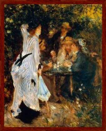 Renoir wendet sich durch seine Bekanntschaften mit Monet, Sisley, Bazille und später Manet einer neuen Kunstrichtung zu, die später als Impressionismus bezeichnet wird. Renoir malt zunehmend im Freien und lässt sich von deren Motiven inspirieren. Impressionismus, das sich vom Lateinischen ableitet und Eindruck bedeutet, zeigt die Charaktermerkmale. Diese sind die Natürlichkeit, der Einsatz von Farbe. Die Darstellung des Lichtes und die atmosphärischen Eindrücke nehmen Einzug in die Bilder. Renoir schließt sich dieser Kunstrichtung an und malt fortan in diesem Stile.