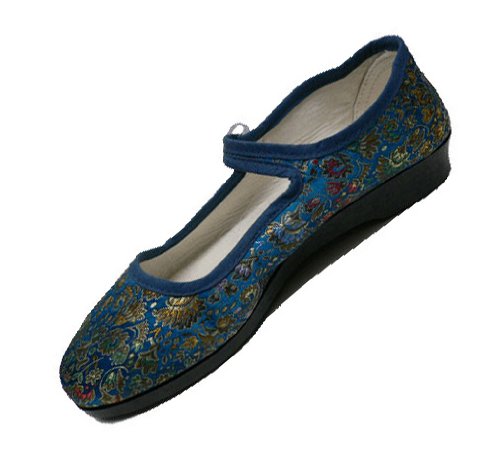 China-Samtschuhe sind im Prinzip Ballerinas mit Riemchen. Die Schuhe sind nicht wegen eines für Wanderungen geeigneten Fußbetts bequem, sondern wegen der Form. Es handelt sich um einen etwas eckigen Schnitt, der für vorne breitere Füße ideal ist. Das wird auch mal als asiatische Form bezeichnet, vielleicht haben Asiaten generell breitere Füße. Oben Samt, unten eine Gummisohle. Nur für Regenwetter sind die China-Samtschuhe daher nicht zu empfehlen.