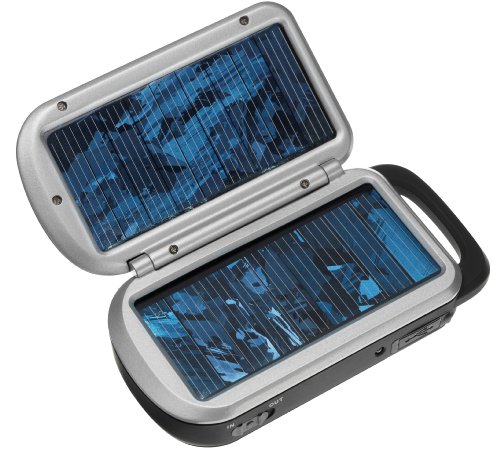 Eigens für den Outdoorbereich entwickelte Solargeräte sind robust, spritzwasser- geschützt und auch für aufwändigere Expeditionen geeignet. Der Soulra Raptor SP200 ist praktisch ein elektronisches Schweizermesser; Solarbetriebene Uhr, Radio, Kompass, Thermometer, Höhen- messer und Barometer in einem, dazu ein Flaschenöffner.