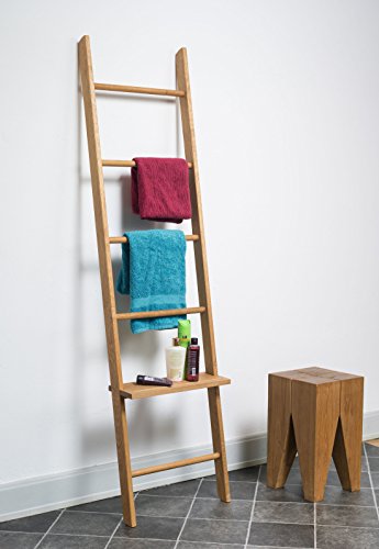 Diese Ablage wird gegen die Wand gelehnt. Die Leitern eignen sich vielleicht sehr gut als Ablage für die Sportsachen. Man kann sie auch als Handtuchhalter verwenden. Dusch- und Badetücher nehmen immer sehr viel Platz weg. In formschönem Holz gehalten sind die Kleiderleitern als Ergänzung für das Badezimmer durchaus einen Blick wert.