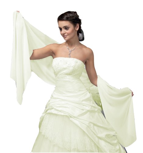 2014 setzen Designer auf gedeckte Pastell-Töne aber auch auf kräftiges Rot. In Kombination mit dem Klassiker Weiß lassen sich wunderschöne, harmonische Outfits kreieren. Chiffon-Stola breit zu Brautkleid weiss |
