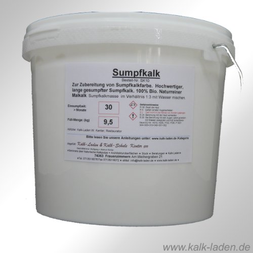 - Als Faustregel gilt: Mindestens 500 ml Wasser auf 1 kg Kalk, die Farbe kann dann weiter verdünnt werden. Je dünner, desto gleichmäßiger der Auftrag aber desto mehr Schichten sind nötig.