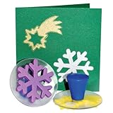 Aus dem Papier wird ein Rechteck in Din-A5-Größe ausgeschnitten (für Geschenkanhänger reicht Größe Din-A6) und in der Mitte gefaltet. Auf die Vorderseite malt man ein großes Weihnachtsmotiv und zwar so, dass eine Falzlinie (siehe Zeichnung) erhalten bleibt. Dann schneidet man das Motiv aus und hat eine einzigartige Weihnachtskarte. Diese kann dann noch mit Glitzer, Glanzpapier, Watte, Kordeln oder Kartoffeldruck (siehe unten) verziert werden.