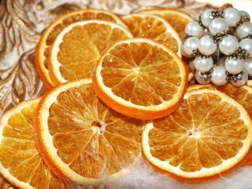 Orangen spielen eine wichtige Rolle bei der Gestaltung von Weihnachstbasteleien aus Naturmaterial. Getrocknete Orangenscheiben setzen wunderbare farbliche Akzente beim Basteln von Adventsgestecken. Man kann sie ganz leicht im Backofen selbst herstellen, indem man sie in zwei bis drei Millimeter dicke Scheiben schneidet und bei 50 Grad trocknen lässt, was allerdings fünf bis sechs Stunden dauern kann. Man kann auch Zitronen oder Limetten verwenden.