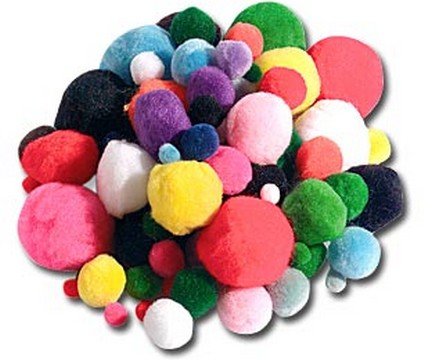 Die Pompoms können Sie entweder schon fertig kaufen, oder aber, wenn Sie viel Geduld haben, selber machen. Dies geht ganz einfach mit ausgeschnittenen Pappscheiben oder aber mit einem Pompommaker, der schon für wenig Geld zu haben ist. Mit den Stecknadeln werden die fertigen Pompoms dann auf die Styroporkugeln gesteckt.