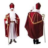 Weiter trägt er ein goldenes Buch mit sich sowie einen Jutesack. Eine Rute vervollständigt das Bild.
