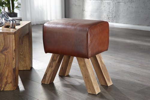 Ein relativ neuer Trend ist es auch, alte Turngeräte, z.B. Sprungböcke oder kleine Turnkasten ins kleine Wohnzimmer zu stellen. Der kleine Sprungbock erinnert an die Jugend- und Schulzeit und ist mit Echtleder bezogen. Man kann ihn als bequemen Sitzhocker verwenden. Ein echtes Kult-Objekt!