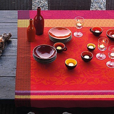 Da in der Provence viel gewebt wird, ist der naturfarbene Leinenstoff weitverbreitet, der auch gerne mit eingewebten Blumen-, Karo- oder Streifenmustern kombiniert wird (Jacquard-Stoffe). Auch lavendelfarbene Akzente bei Accessoires sieht man häufig. Bei Kissen und Stoffen ist auch das edle Toile-de-Jouy-Muster sehr beliebt. Ebenso beliebt sind die "Indiennes", bedruckte Baumwollstoffe, die einst von den Portugiesen aus den westindischen Inseln nach Europa gebracht wurden. Mit der Zeit gab es im Mittelmeerraum immer zahlreichere Produktionsstätten für diesen leichten Baumwollstoff. Als Vorhänge verwenden Sie bedruckte Baumwollstoffe, die mit Ringen an Eisenstangen hängen.