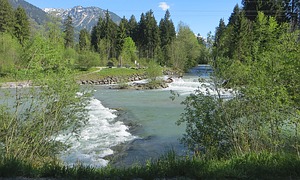| Illerursprung wandern von Fischen nach Oberstdorf und zurück Vom Aussichtsplatz am Illerursprung und auch am Ufer gegenüber zeigt sich eindrucksvoll bei der Mündung der Flüsse Trettach, Stillach und Breitach der Beginn der Iller. Vom Ursprung bis zur Mündung bei Ulm in die Donau sind es 147 Kilometer. Die Rundstrecke von Fischen schenkt vom Parkplatz weg über den Dammweg an der Iller bis Oberstdorf wundervolle Blicke auf den Fluss und in die Bergwelt Oberstdorfs. | |